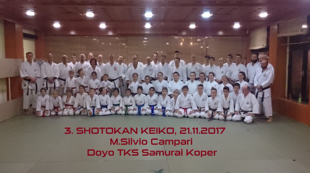 14. SHOTOKAN KEIKO M° Silvio Campari VI.DAN z nami v torek, 21. 11. 2017 Dojo TKS Samurai Koper do 3. kyu od 18:00 do 19:30 3. kyu in višje od 19:30 dalje