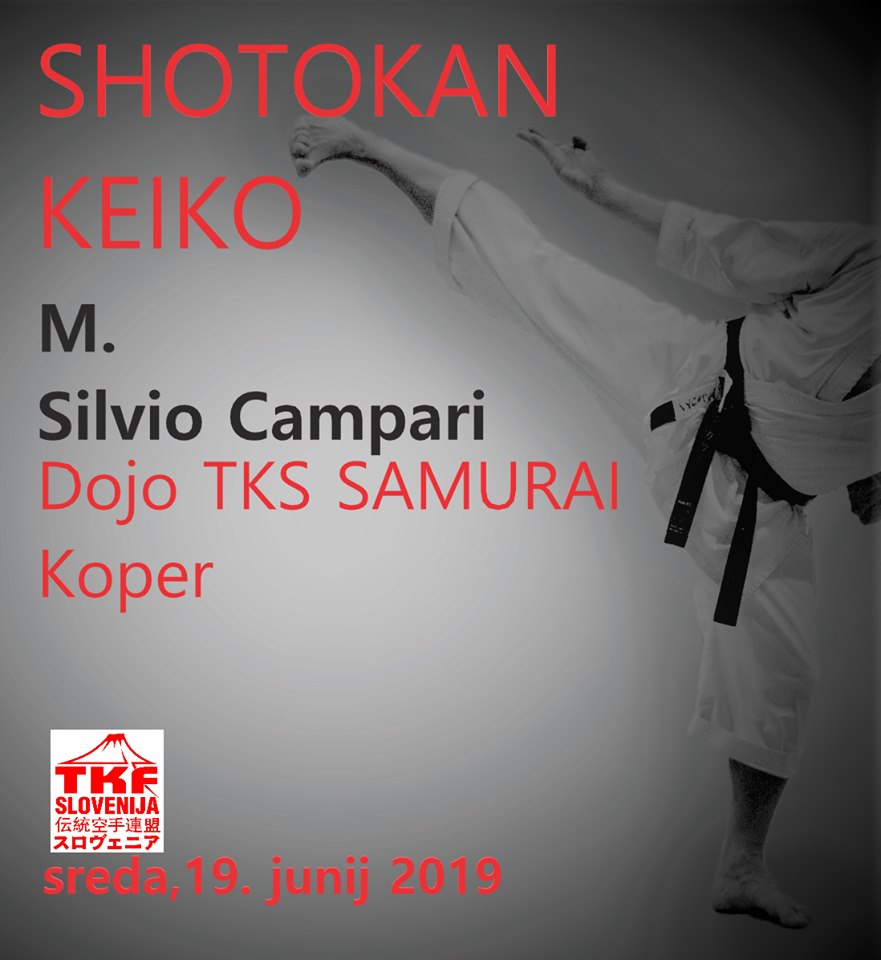 V sredo, 19. junija 2019 nas bo v Doju TKS SAMURAI v Kopru obiskal M°SILVIO CAMPARI.Vodil bo seminarsko vadbo od 19.00h do 21.30h.Vabljeni! FoTo galerija.
