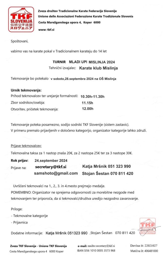 Pokličite nas za informacije ter prijavo tekmovalcev.