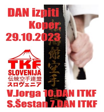 V nedeljo, 29. oktobra 2023 so v Kopru javno potekali izpiti Tradicionalne Karate Federacije Slovenije za DAN stopnje. Ob prisotnosti Predsednika TKF Slovenije Matije Blažiča in pred Strokovno izpitno komisijo v sestavi Vladimir Jorga -10.DAN […]